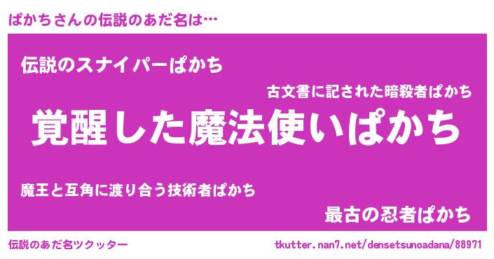 | 意味不明あだ名 | 『とにかく怪しいぱかち』『自称ぱかち』 |