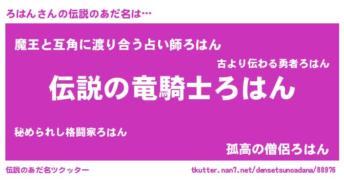 | ヒーロー風カッコイイあだ名 | 『スーパーロハン』『愛の使者ろはん』 |