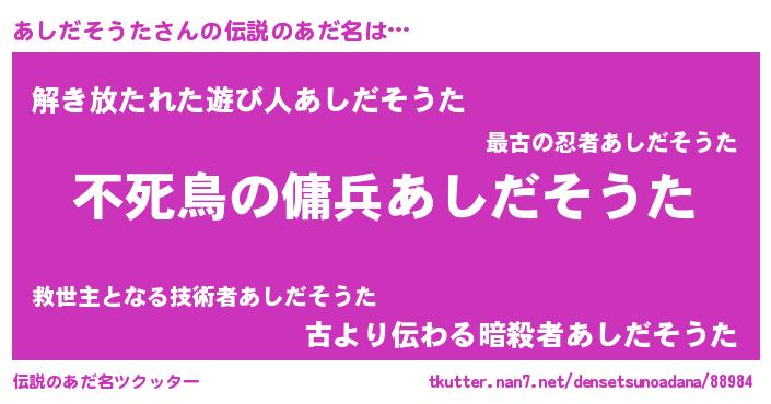 | 意味不明あだ名 | 『住所不定無職あしだそうた(62歳)』 |