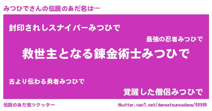 | ヒーロー風カッコイイあだ名 | 『天空の使者みつひで』『仮面ミツダー』 |