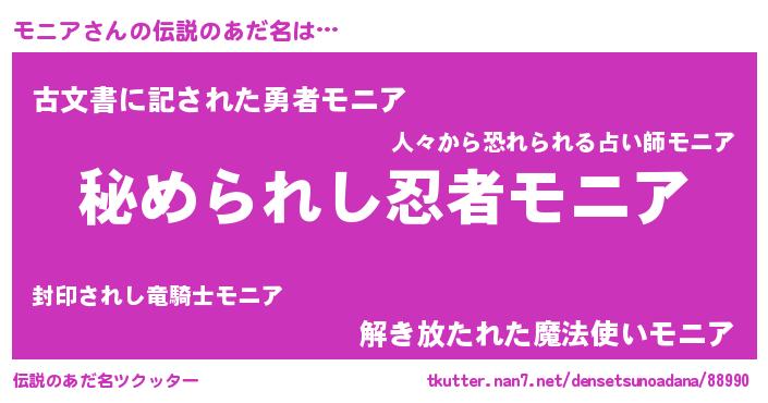 | ヒーロー風カッコイイあだ名 | 『仮面モニダー』『超時空戦士モニア』 |