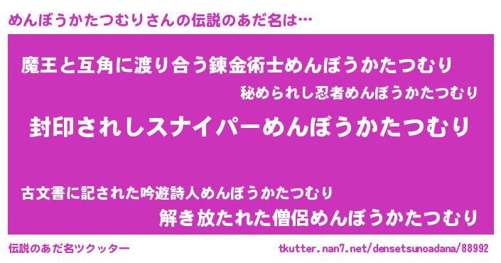 | ヘコむあだ名 | 『めんっふぃ~』『めんぷりん』 |