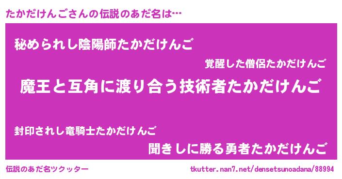 | ヒーロー風カッコイイあだ名 | 『慈愛の使者たかだけんご』 |