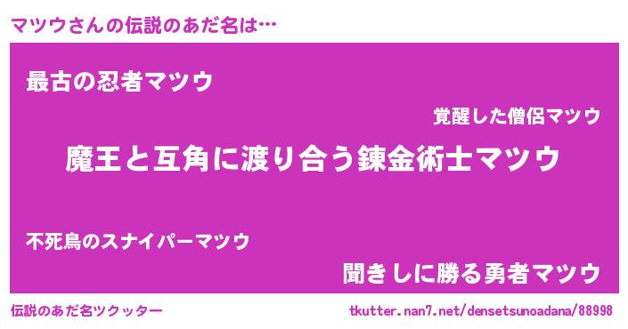 | ヒーロー風カッコイイあだ名 | 『サイバー戦士マツウ』『愛の使者マツウ』 |