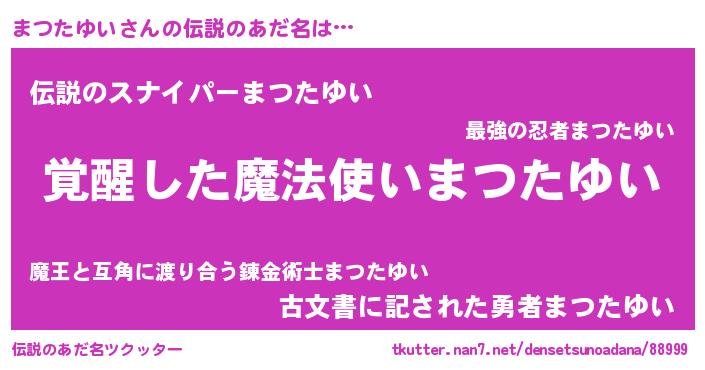 | 胡散臭い通販商品みたいなあだ名 | 『全米が絶賛したサプリメント…その名も「まつたゆい」』 |