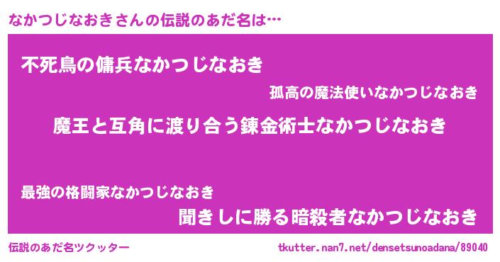 | ヒーロー風カッコイイあだ名 | 『慈愛の使者なかつじなおき』 |