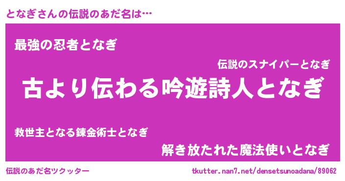 | ファンタジー風あだ名 | 『トナディッシュ』『エターナルトナギー』 |