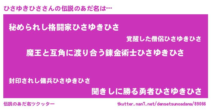 | 女子向けラノベタイトル風あだ名 | 『乙女ゲームの破滅フラグしかない悪役ひさゆきひさに転生してしまった…』 |