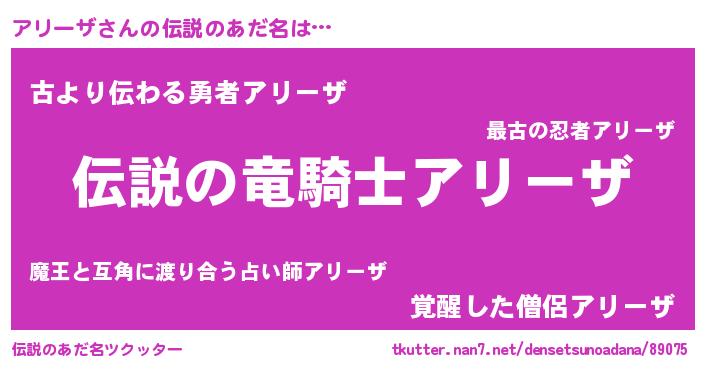 | ファンタジー風あだ名 | 『ゼアリトゥ』『アリフェル』 |