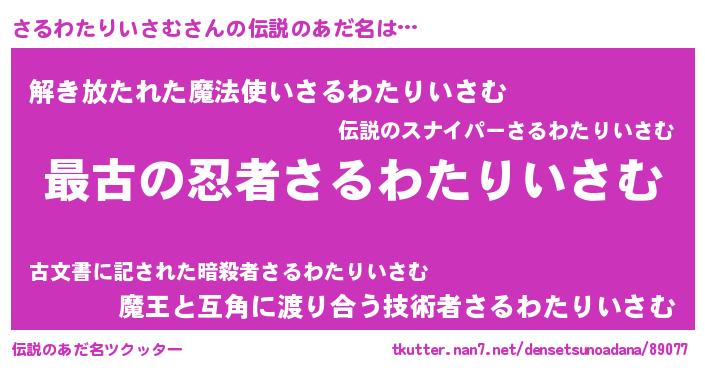 | 意味不明あだ名 | 『さるわたりいさむフォーエバー』 |