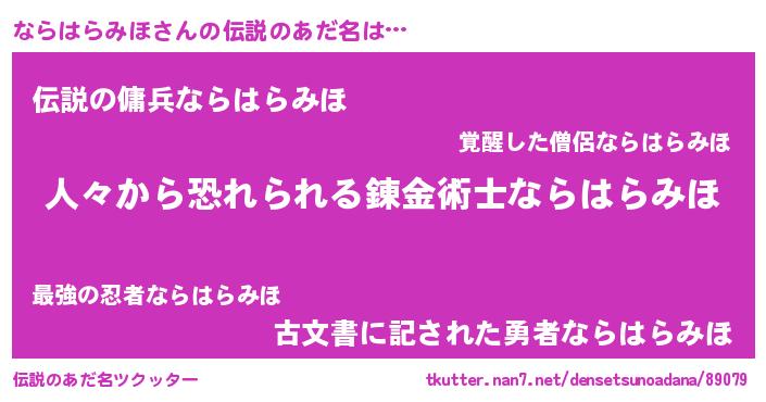 | ヒーロー風カッコイイあだ名 | 『仮面ナラダー』『究極戦士ナラハラミホ』 |
