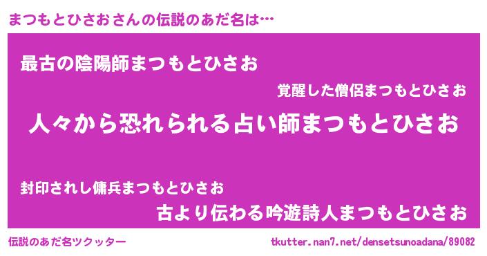 | 意味不明あだ名 | 『住所不定無職まつもとひさお(59歳)』 |