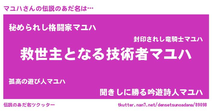 ヒーロー風カッコイイあだ名 | 『天空の使者マユハ』『仮面マユダー』 |