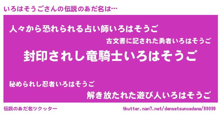 | 意味不明あだ名 | 『自称いろはそうご』 |