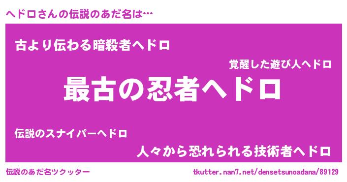 | ヒーロー風カッコイイあだ名 | 『ウルトラヘドロマン』『ネオヘドロ』 |