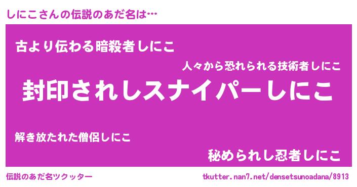 | 意味不明あだ名 | 『ペロリンしにこ』『永久保存しにこ』 |