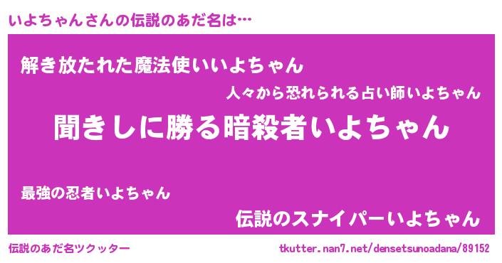| 意味不明あだ名 | 『永久保存いよちゃん』『自称いよちゃん』 |