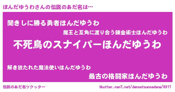 | 胡散臭い通販商品みたいなあだ名 | 『モテモテ間違いなし霊験あらたかなお札…その名も「ほんだゆうわ」』 |