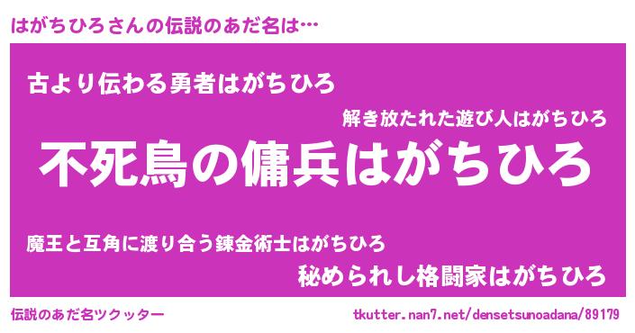 | ヒーロー風カッコイイあだ名 | 『スーパーハガチヒロ』『仮面ハガダー』 |