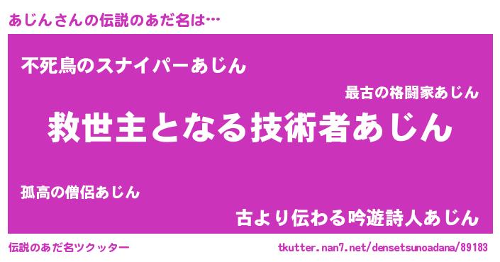 | ヘコむあだ名 | 『あじふぇ~』『あじん(遠い目)』 |