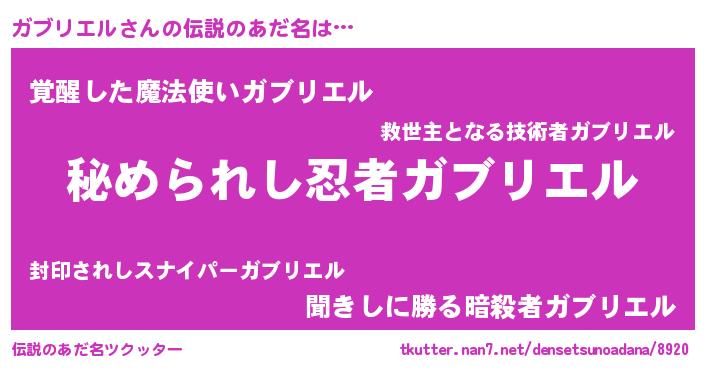 | 男性向けラノベタイトル風あだ名 | 『やはりガブリエルの青春ラブコメはまちがっている 』 |