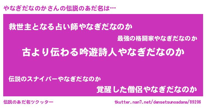 | 意味不明あだ名 | 『住所不定無職やなぎだなのか(13歳)』 |