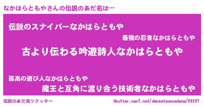 | ヘコむあだ名 | 『なかはらともや(笑)』『なかもー』 |