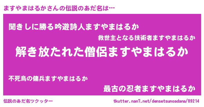 | ヘコむあだ名 | 『ますっぺ』『ますやまはるか(小並感)』 |