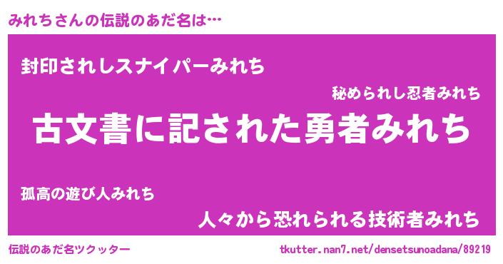 | ヒーロー風カッコイイあだ名 | 『仮面ミレダー』『ネオミレチ』 |