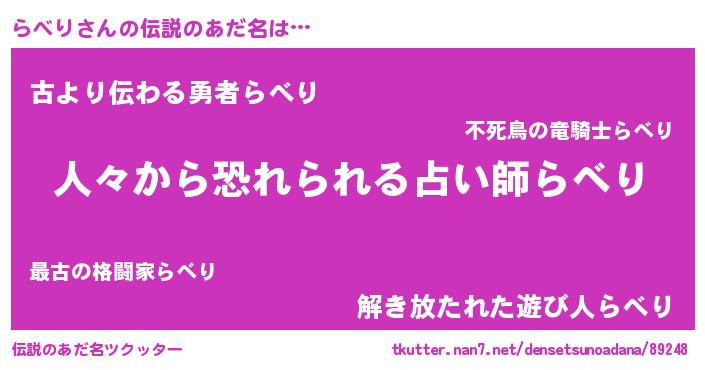 | ヒーロー風カッコイイあだ名 | 『正義の使者らべり』『仮面ラベダー』 |