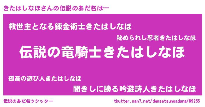 | 男性向けラノベタイトル風あだ名 | 『キタハシナホスレイヤー』 |
