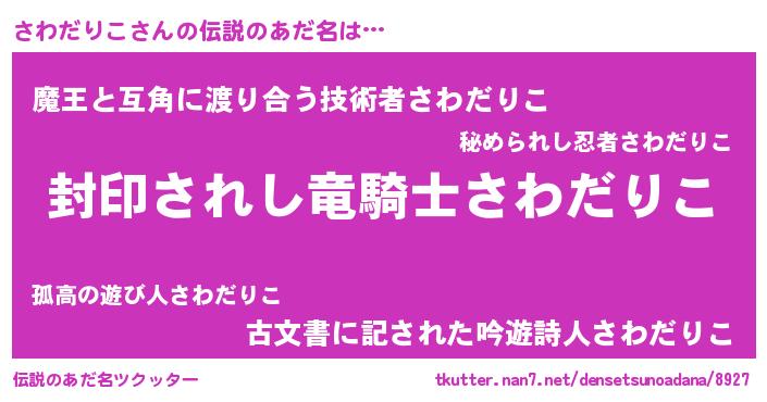 | 女子向けラノベタイトル風あだ名 | 『闇のさわだりこ』 |