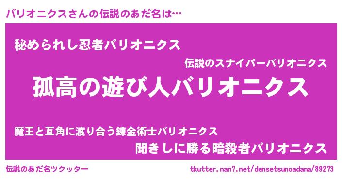 | 意味不明あだ名 | 『とにかく怪しいバリオニクス』 |