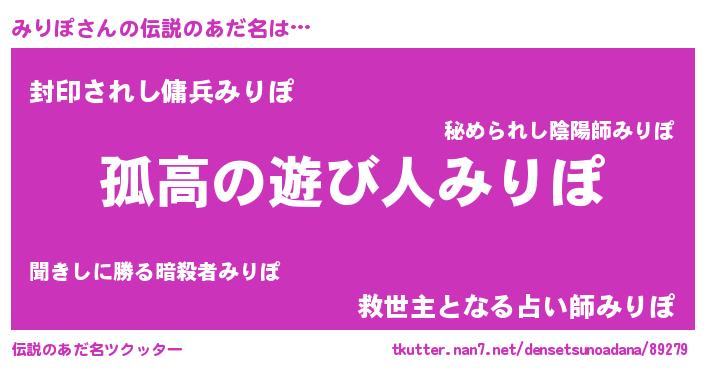 | 意味不明あだ名 | 『とにかく怪しいみりぽ』『自称みりぽ』 |