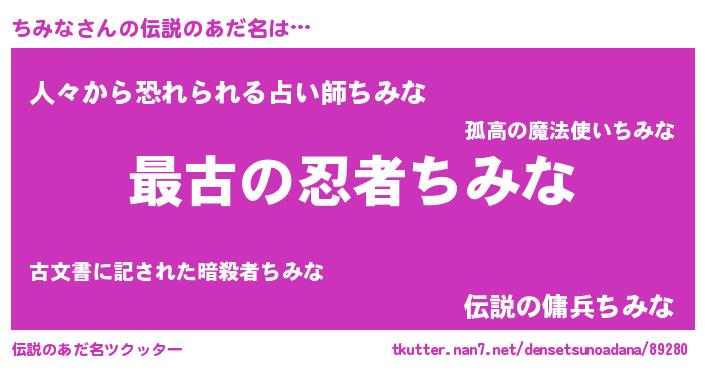 | 男性向けラノベタイトル風あだ名 | 『うちの娘の為ならば、俺はもしかしたらちみなも倒せるかもしれない。』 |