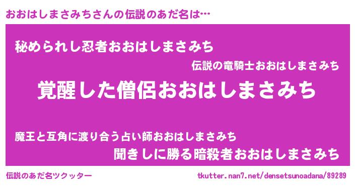 | 意味不明あだ名 | 『とにかく怪しいおおはしまさみち』 |