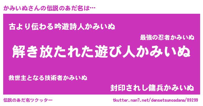 | 意味不明あだ名 | 『とにかく怪しいかみいぬ』 |