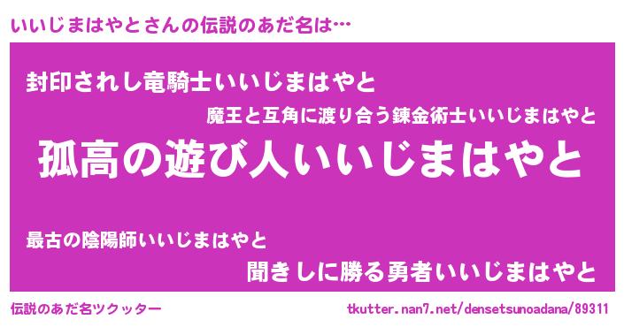 | 意味不明あだ名 | 『住所不定無職いいじまはやと(71歳)』 |