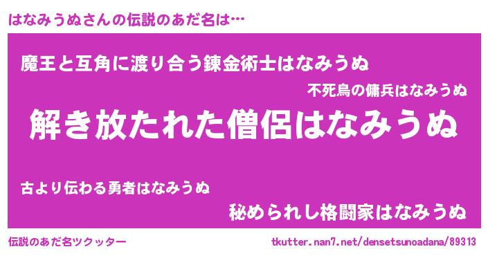 | ヒーロー風カッコイイあだ名 | 『サイバー戦士ハナミウヌ』 |
