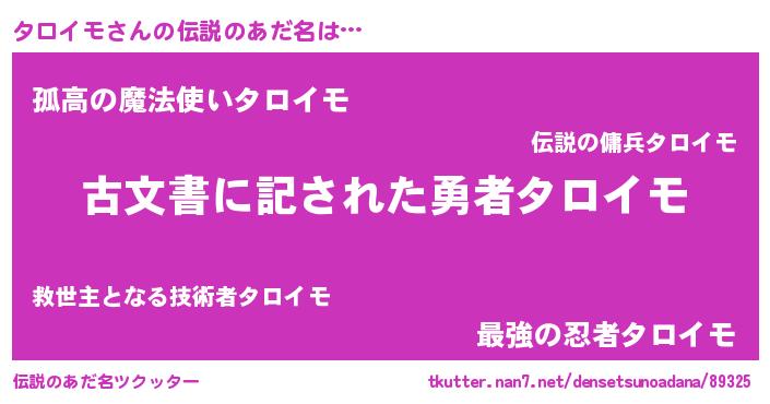 | ヒーロー風カッコイイあだ名 | 『最強戦士タロイモ』『ネオタロイモ』 |