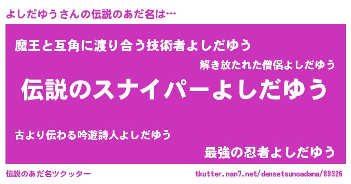 | ヒーロー風カッコイイあだ名 | 『スーパーヨシダユウ』『魔戒騎士ヨシ』 |