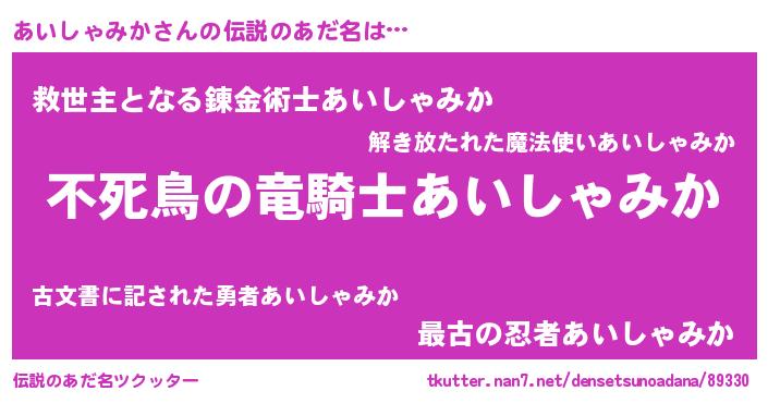 | 男性向けラノベタイトル風あだ名 | 『アイシャミカアートオンライン』 |