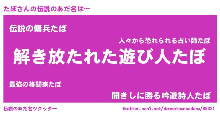 | ヒーロー風カッコイイあだ名 | 『魔戒騎士タボ』『スーパータボ』 |