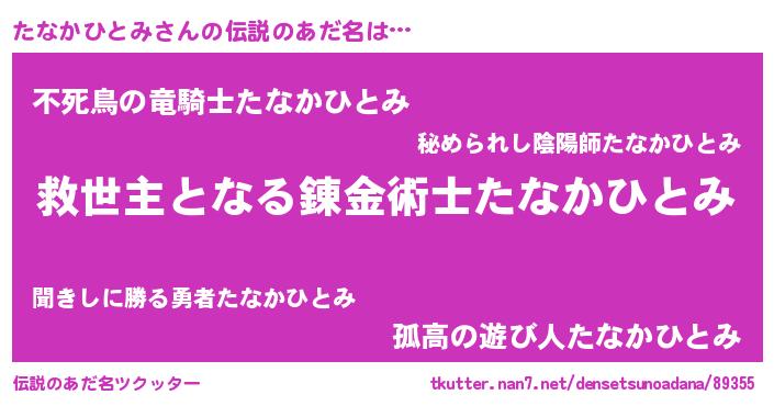 | 女子向けラノベタイトル風あだ名 | 『死神たなかひとみの再婚』 |