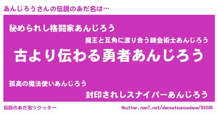 | 意味不明あだ名 | 『永久保存あんじろう』『自称あんじろう』 |