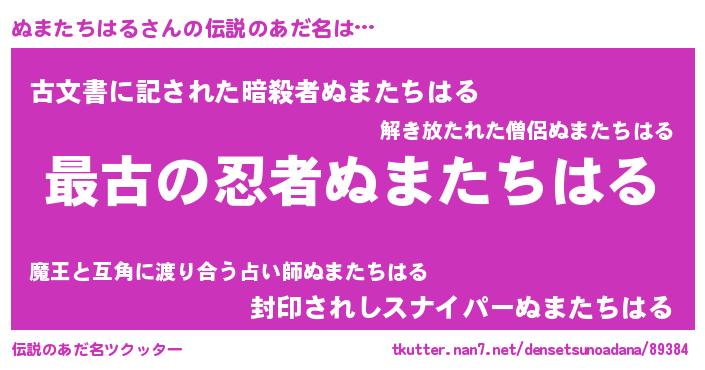 | 意味不明あだ名 | 『住所不定無職ぬまたちはる(14歳)』 |