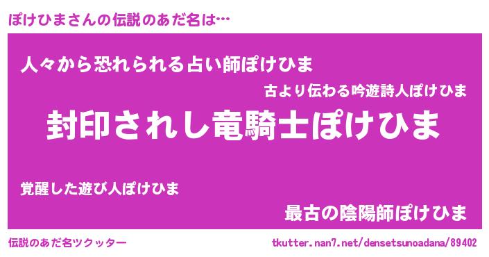 | 意味不明あだ名 | 『ペロリンぽけひま』『自称ぽけひま』 |