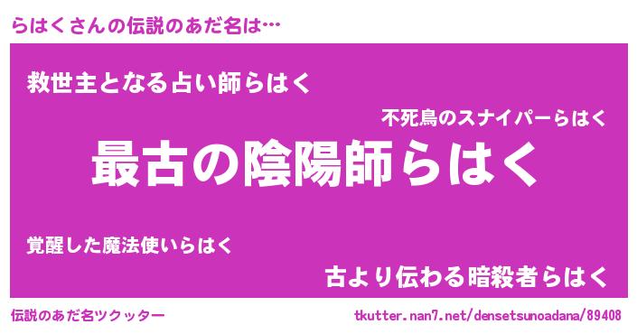 | ファンタジー風あだ名 | 『カークラハラー』『エターナルラハクー』 |