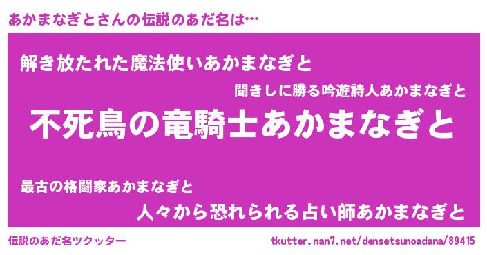 | 意味不明あだ名 | 『自称あかまなぎと』 |