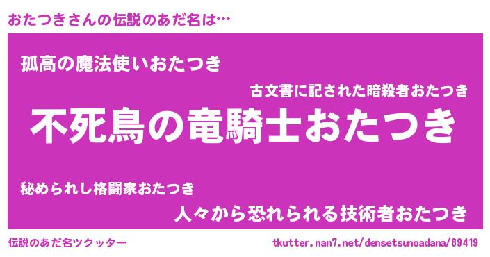 | 意味不明あだ名 | 『住所不定無職おたつき(12歳)』 |